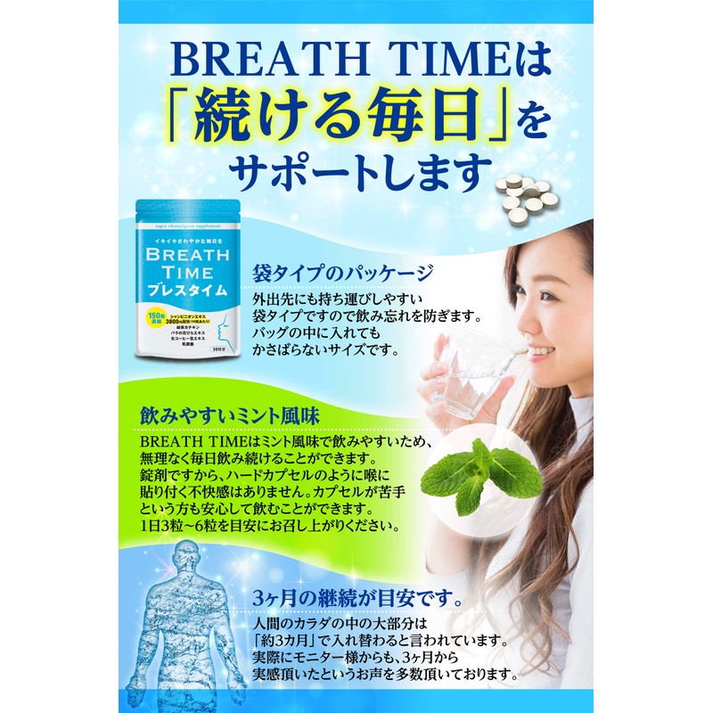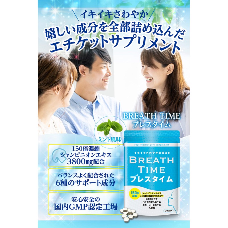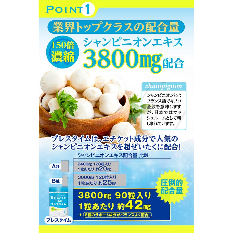 ブレスタイム 150倍濃縮シャンピニオン 3800mg配合 乳酸菌 食物繊維 緑茶ポリフェノール エチケットサプリメント 30日分