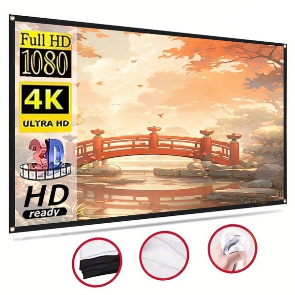 150-Inch Projector Screen, Foldable & Washable Projector Screen, High Density Ironing 16:9 Polyester Projection Screen for Outdoor & Indoor Use