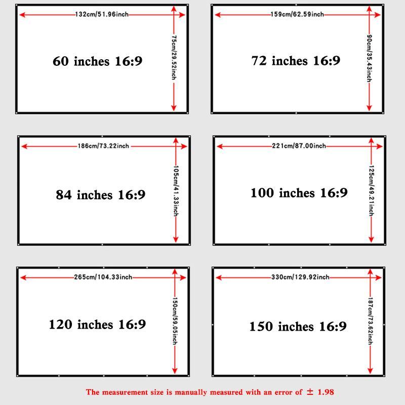150-Inch Projector Screen, Foldable & Washable Projector Screen, High Density Ironing 16:9 Polyester Projection Screen for Outdoor & Indoor Use