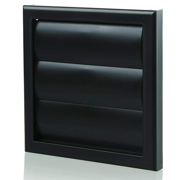 - 185 mm x 185 mm size, black Plastic Ducting Air Inlet / Air Outlet with Gravity Shutters - 6 inch / 150mm diameter round male spigot on the back of the grille.