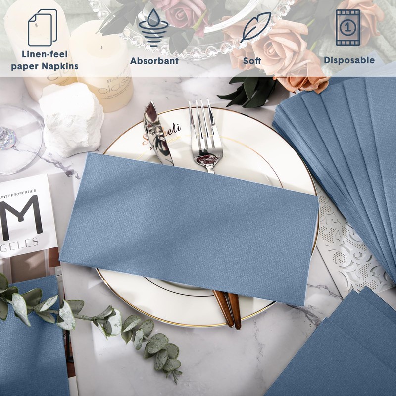 - Soft and Absorbent: disposable napkins are made of quality breathable paper, which feels like fabric cloth; Soft, absorbent and tear resistant, they won't be broken or worn easily, drying your hands completely in one shot, can be applied throughout the meal