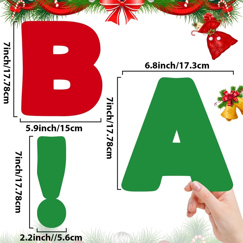 - 【Christmas Red and Green Design】This Christmas theme red and green large letter punctuation decoration set is very suitable for decorating Christmas holiday classrooms. The bright colors of red and green make your class look fresh and bright, full of energy, and create a full Christmas holiday atmosphere.