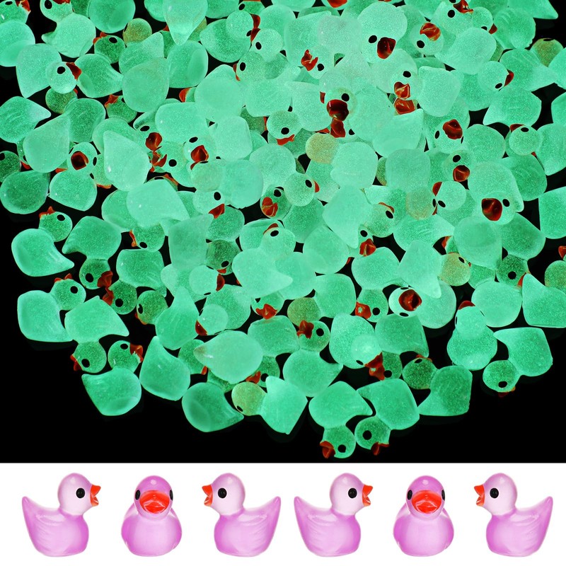 150 Pcs Luminous Tiny Ducks Mini Resin Ducks Miniature Duck Figures Micro Dollhouse Duck Accessories Landscape Gardening Decoration Ornaments (Purple)