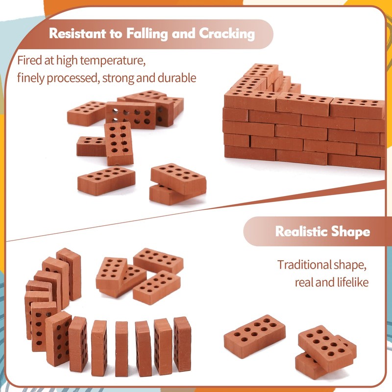 • 【Clay Material】These mini bricks are made of clay material, bricks for garden are realistic and firm, not easy to break in water, not easy to be deformed, and can be used for a long time