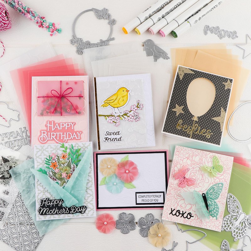 - 【Translucent Vellum Paper Sheet】 it has excellent transparency, high resistance to oil and water penetration, and long-lasting storage. It is great for creative invitations, card inserts, photo overlays, scrapbooks, rubber stamps, table number cards, paper crafts and DIY projects.
