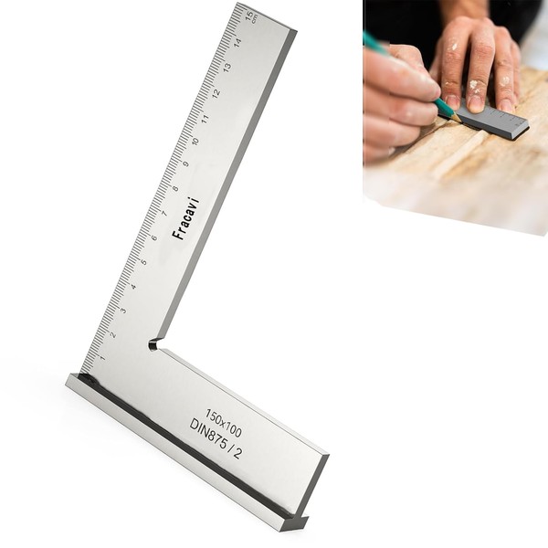 150 x 100 mm Engineer's Square 90° Woodworking Angle with Measuring Ruler (cm), Suitable for Precise Work on Metal Constructions and Workshops (Silver)