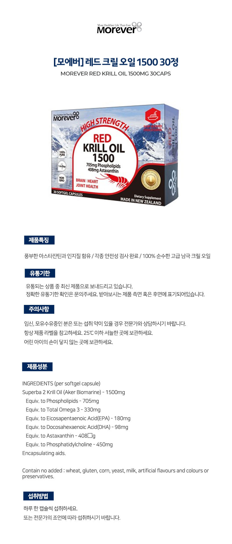 [모에버] 레드 크릴 오일 1500 30정 [Moeber] Red Krill Oil 1500 30 Capsules