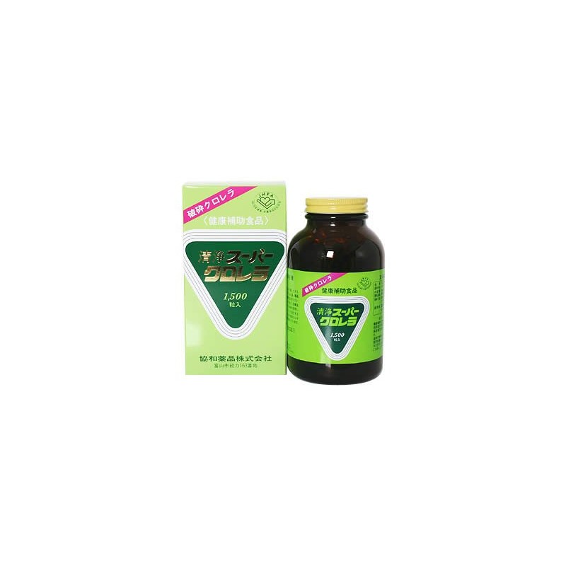 清浄スーパークロレラ 太陽の無限のエネルギーを巧みに利用するクロレラ野菜の王様クロレラ。クロレラの細胞壁破砕に成功し、消化率が一段とアップしました。名称クロレラ食品原材料名クロレラ原末内容量 規格成分300g(200mg×1500粒)栄養成分表示 100g中 エネルギー 300-435kcal、たんぱく質 50-70g、脂質 10-15g、糖質 2-5g、食物繊維 5-10g、ナトリウム 50-250mg、ビタミンB2 2-5mg、鉄 60-120mg、カルシウム 100-250mg、葉緑素 2-4g、小動物によるクロレラたんぱく質の消化率 82%お召し上がり方健康維持に努めたい方や野菜の不足がちな方など家族皆様でお召し上がり頂けます。通常の食事における緑黄色野菜摂取量からみて、1日40粒以内を目安に水又はお湯とともにお召し上がり下さい。販売元 協和薬品株式会社製造国 日本区分 健康食品
