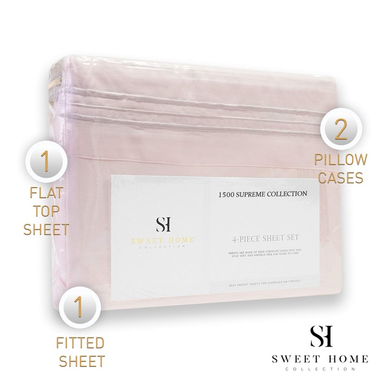 1500 Supreme Collection Bed Sheet Set - Extra Soft, Elastic Corner Straps, Deep Pockets, Wrinkle & Fade Resistant Hypoallergenic Sheets Set, Luxury Hotel Bedding, Full, Pale Pink