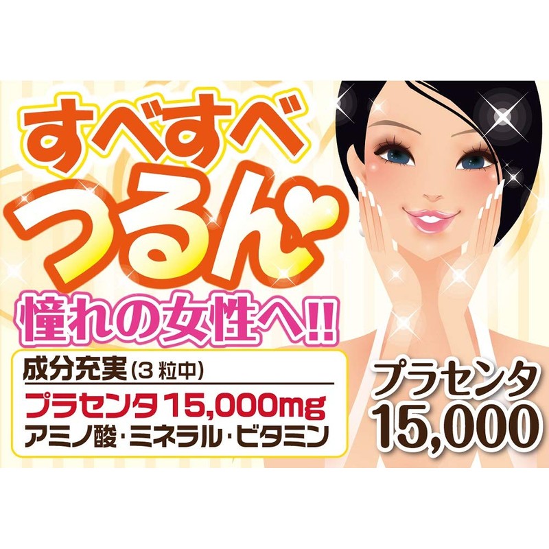 - 栄養成分 : 栄養成分表示/3粒(1.41g)当たり 熱量8.23kcal、たんぱく質0.60g、脂質0.60g、炭水化物0.12g、ナトリウム.70mg、プラセンタエキス15000mg(生胎盤換算)(プラセンタエキス末・・・300mg)