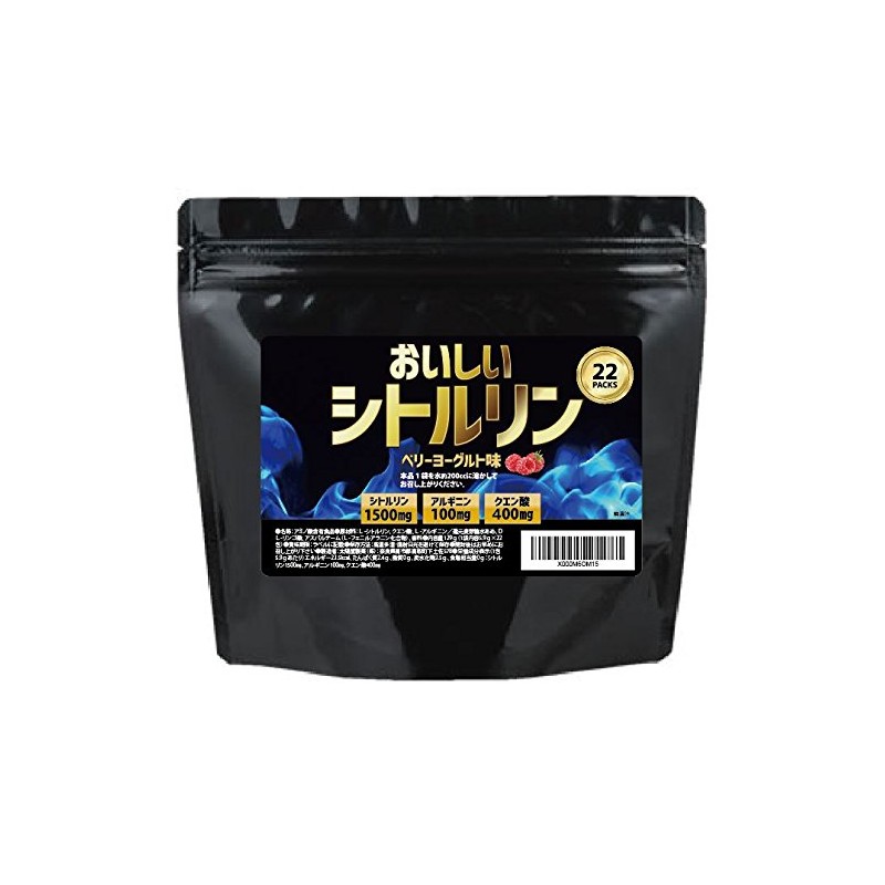 - 水で溶かすだけで美味しく飲めるベリーヨーグルト味のアミノ酸シトルリン補充サプリ。1包でシトルリン1500mg・アルギニン100㎎・クエン酸400mg。さらにリンゴ酸も配合