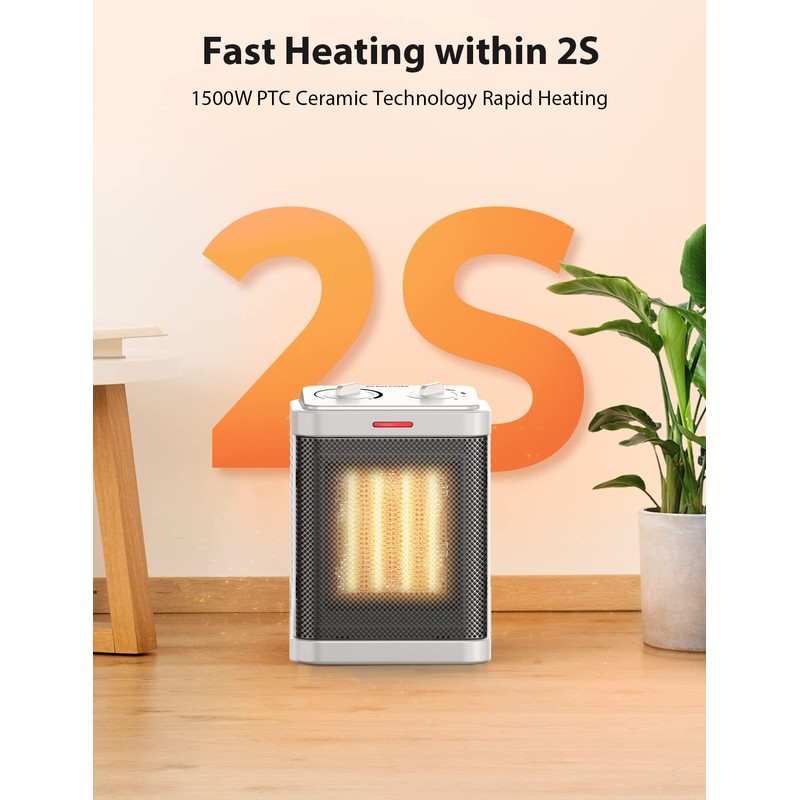 - 【Instantly Heat Your Room】: Durable PTC ceramic material that increases temperature faster than standard heaters. Heating various indoor spaces such as living room, bedroom, etc. Provides quiet and efficient convection heat in 2 seconds. No installation is required, wrap yourself in cozy warmth.