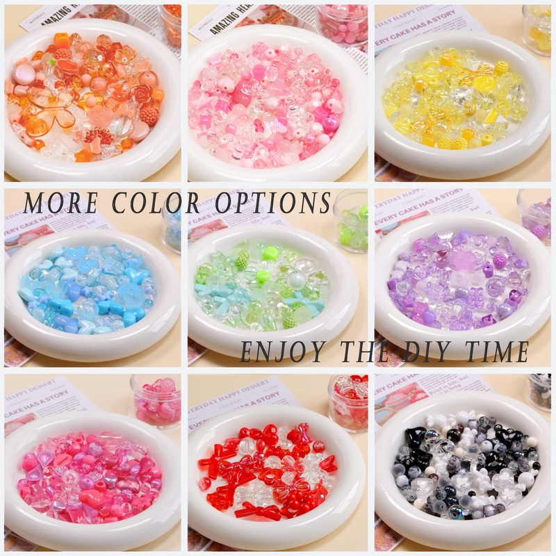 - ✿Package Included: The loose beads set is about 150 gram/0.33lb. You will get 170-230pcs beads because of the different shapes and different sizes. The assorted beads contain random mixing cute patterns, such as bowknot beads,bubble beads, bellflower beads, trumpet flower beads, round beads, ball beads and more