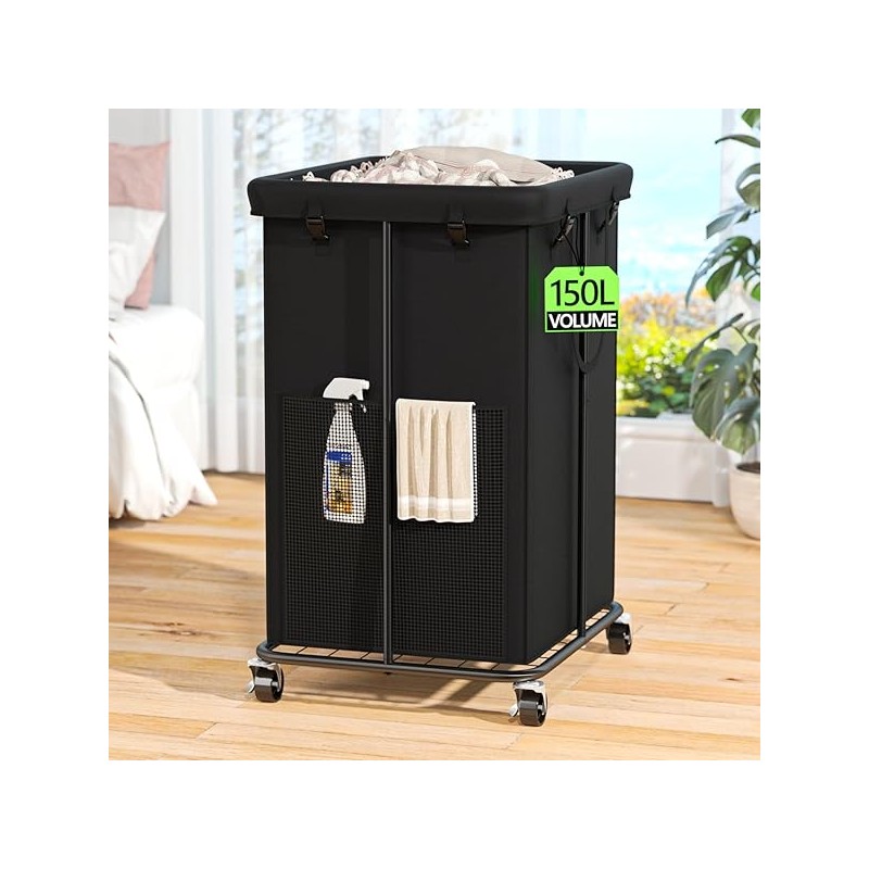 150L Laundry Hamper with Wheels, Rolling Laundry Basket with Metal Frame and Removable Bag, Large & Tall Dirty Clothes Hampers for Bedroom Aesthetic, Laundry Room, Bathroom, Dorm-Black