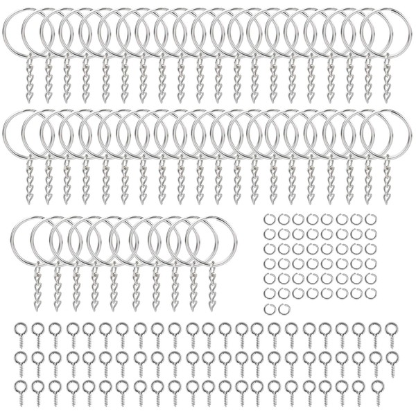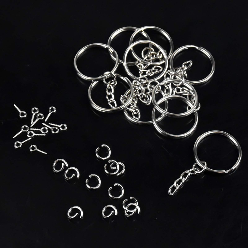 - 【Value Set】: Key ring making kit includes 50pcs split key rings with chain, 50pcs mini open jump rings and 50pcs screw eye pins, enough to meet your keyrings DIY needs.