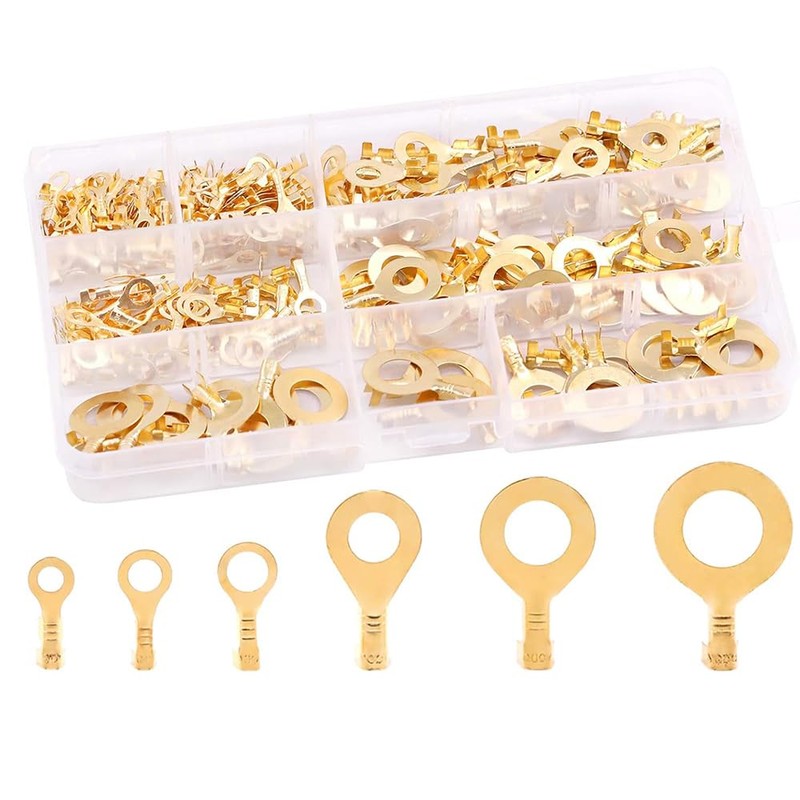 150pcs Round Terminal Set M3 M4 M5 M6 M8 M10 Kit Connector Kit Brass Ring Cable Lugs Round Terminals Copper Lugs Crimp Cable Wire Auto Motorcycle Repair Machining Connector