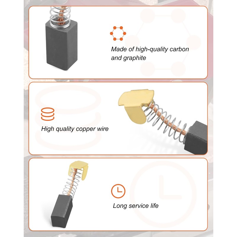 - Installation and Packaging of motor carbon brush: easy to install, which greatly saves time and improves work efficiency. Includes 4 carbon brushes