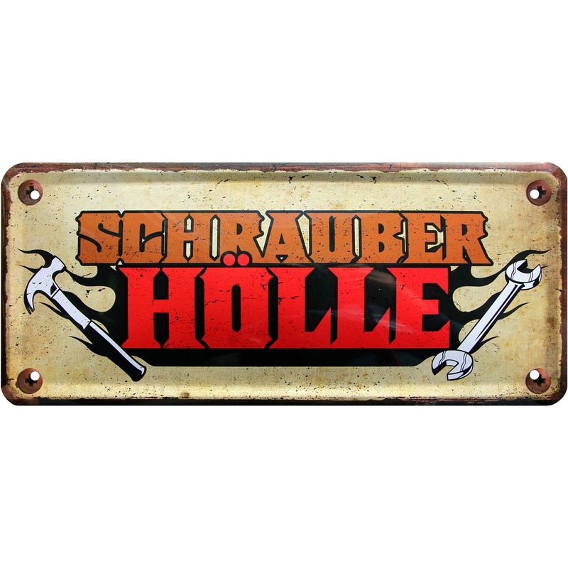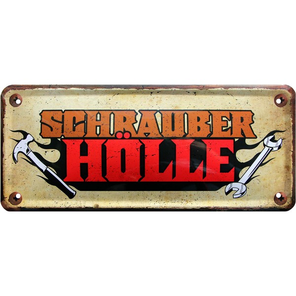 1522 Funny Decorative Tin Sign with"Schrauber Hell" Design [German Language] 28 x 12 cm