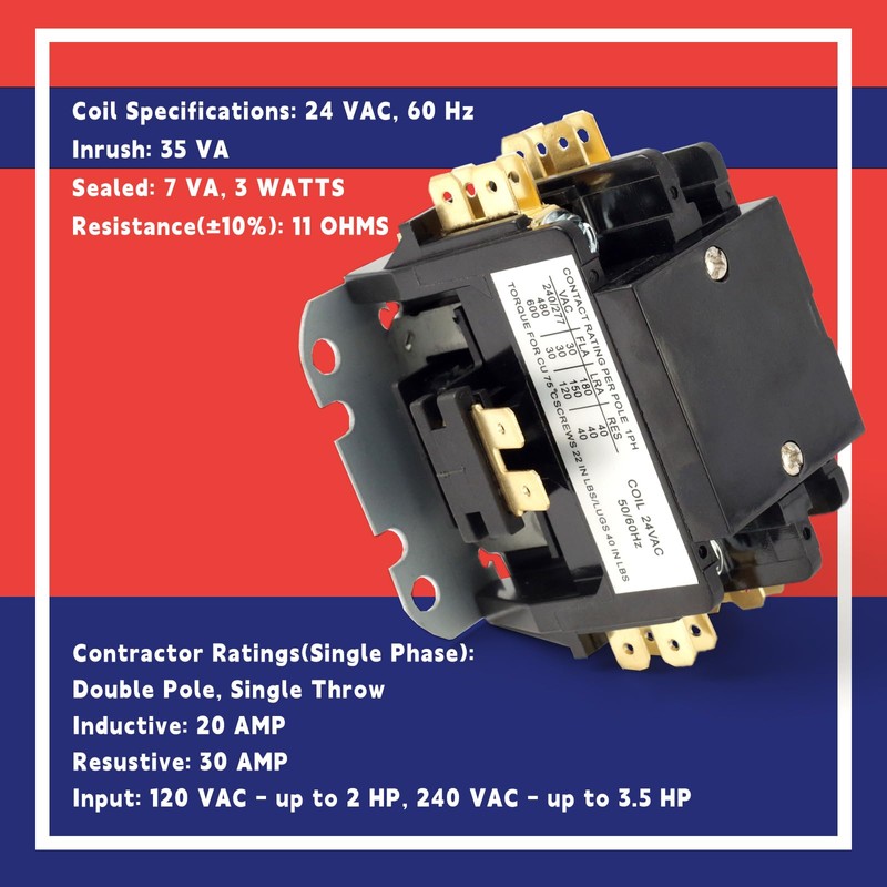 3. Double pole single throw design. It can handle a maximum of 240 volts when protected by a fuse or breaker rated at 100 amps. The electrical rating of the switch contacts is 50% greater than the original contactor.