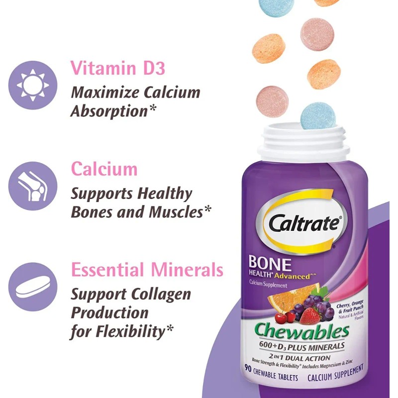 155chewable Calcio 600 Vitamina D3 Minerales / Hueso Dientes Sabor Fruta Natural