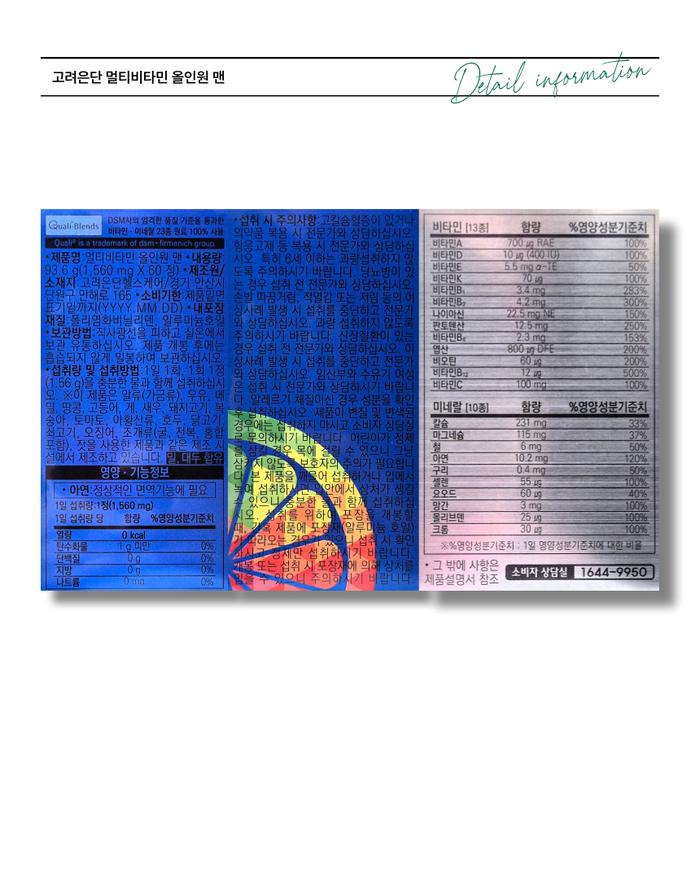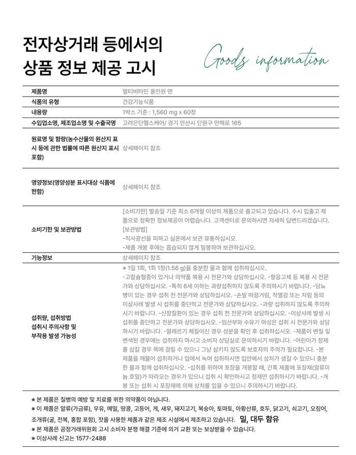 | 제품명 | 고려은단 멀티비타민 올인원 맨 1560mg 60정 |
