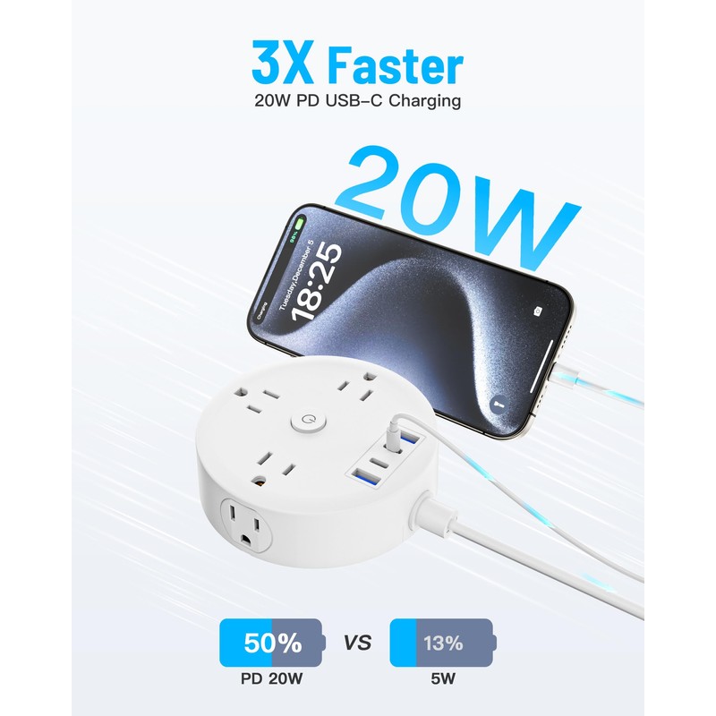 • 【20W USB-C Fast Charging Station 】The 2 prong power strip uses a total charging output of PD 20W USB-C ports and 12W (5V 2.4A) for the USB-A ports. Charge your iPhone 30% faster than normal 12W. With smart fast charging technology, it can auto-detects your devices and reach faster charging efficiency, ideal for most of your electronic devices.