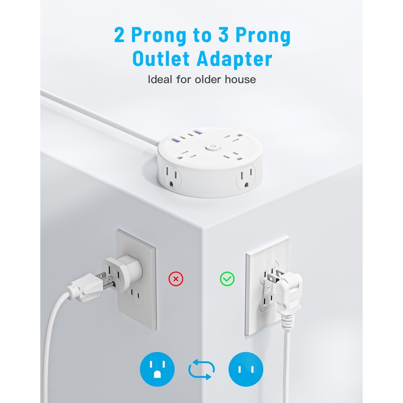 • 【2 Prong to 3 Prong Outlet Adapter】 The usb power strip can convert two prong outlet to a three prong outlet, ideal for the non-grounded outlets in older house/dorm/apartment, turn your 2-prong outlet into a safe, organized charging station.