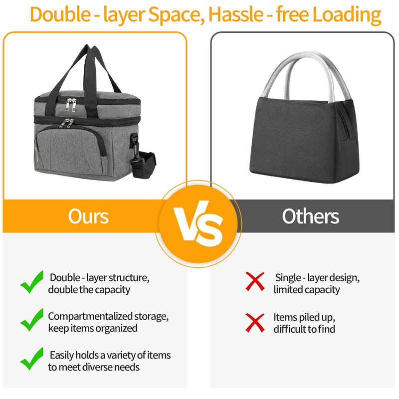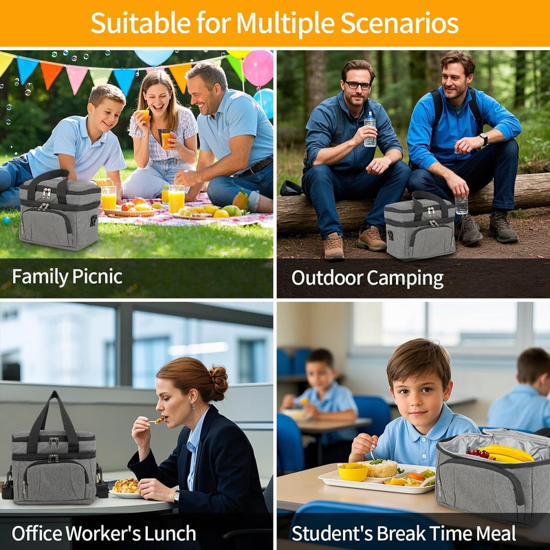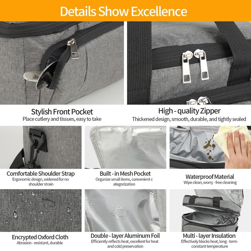 - Hochwertige Isolierung – Die 15L Kühltasche mit doppelschichtigem EVA-hitzeversiegeltem, auslaufsicherem Aluminiumfolien-Picknickdesign hält Speisen und Getränke länger warm oder kalt.