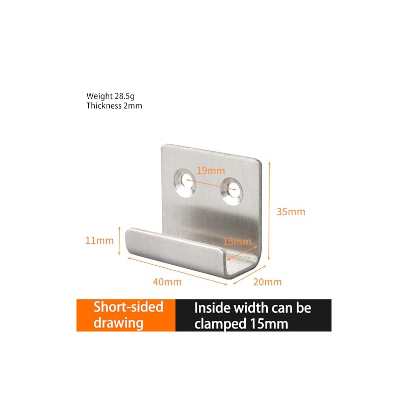 - What You Get: The package includes 4pcs stainless steel wall hooks. The size of the flat hook is 40 x 20 x 35 mm (L x W x H); Edge height: 11mm; Hole distance: 19mm; Slot width: 15mm.
