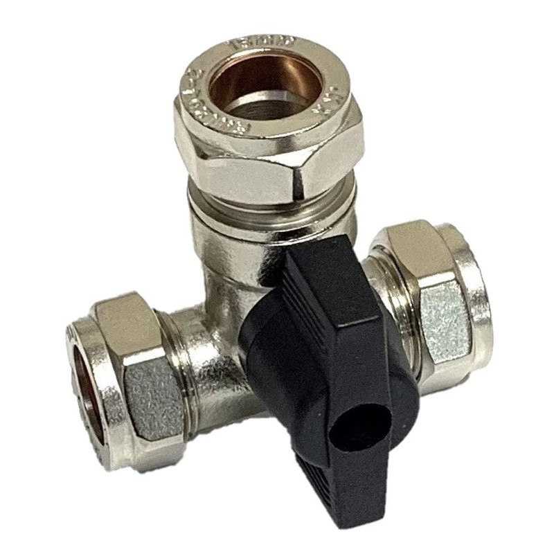 - 15mm Isolation Tee Valve with On Off Handle Compression Fitting