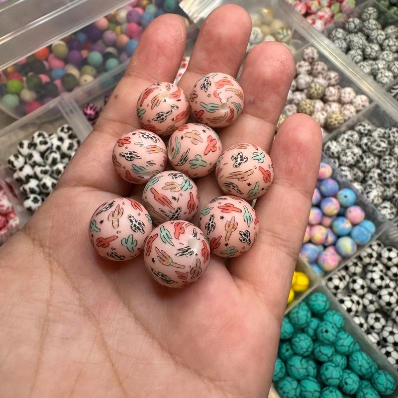 15mm Printed Silicone Beads - 10pc:_Cactus