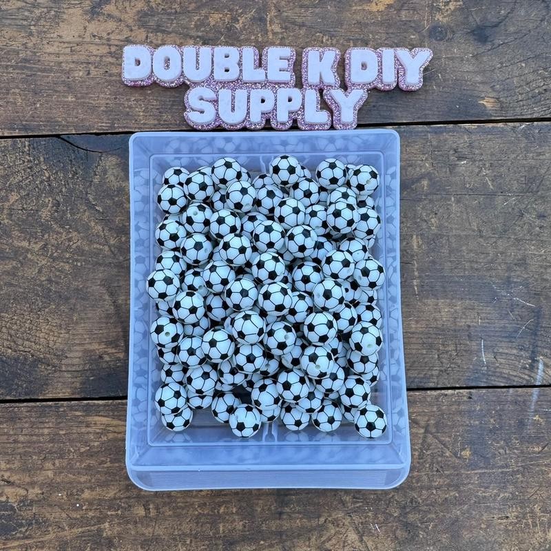 15mm Printed Silicone Beads - 10pc:_Soccer