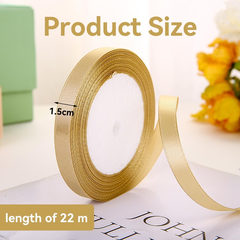 15mm X 22 Meters Gold Ribbon for Gift Wrapping,Single Sided Polyester Gold Satin Ribbon,Gold Wrapping Ribbon,Thin Gold Ribbon,for Christmas,Wedding,Birthday,Bouquets,Car,Hair Bow,DIY Crafting,Party