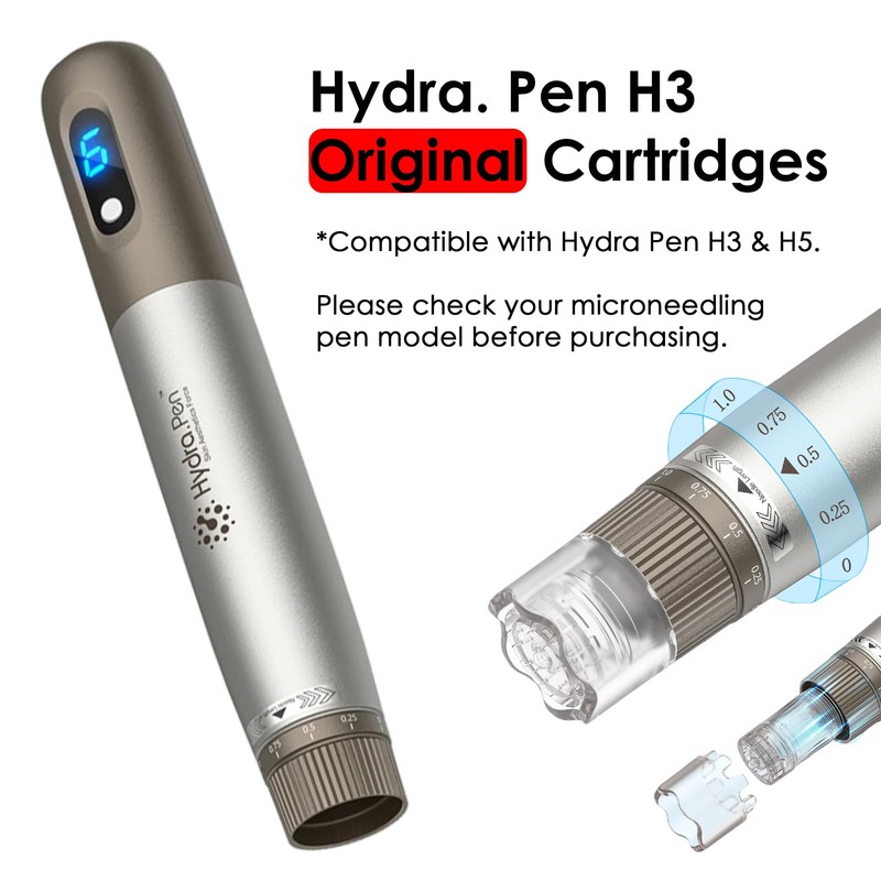 - Genuine Hydra Pen Accessories: These microneedle cartridges are specifically designed for use with the Hydra Pen H3 and H5 serum applicators, ensuring top-quality and seamless compatibility. Suitable for both Hydra Pen H3 and H5.