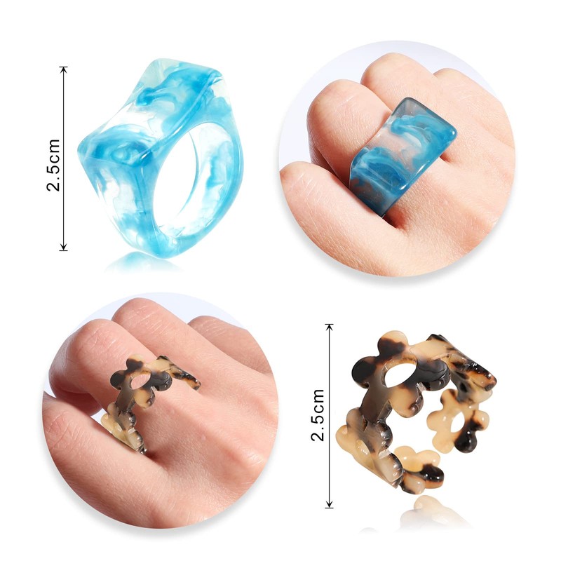 3.You can wear the retro resin acrylic rings Individually or stack them in any way you like, providing you with a variety of choices everyday.