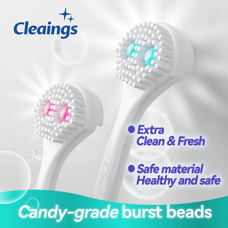 - First bite the cleaning paste bead, then gently brush the tongue coating, and finally use the tongue scraper on the back to clean the tongue surface.
