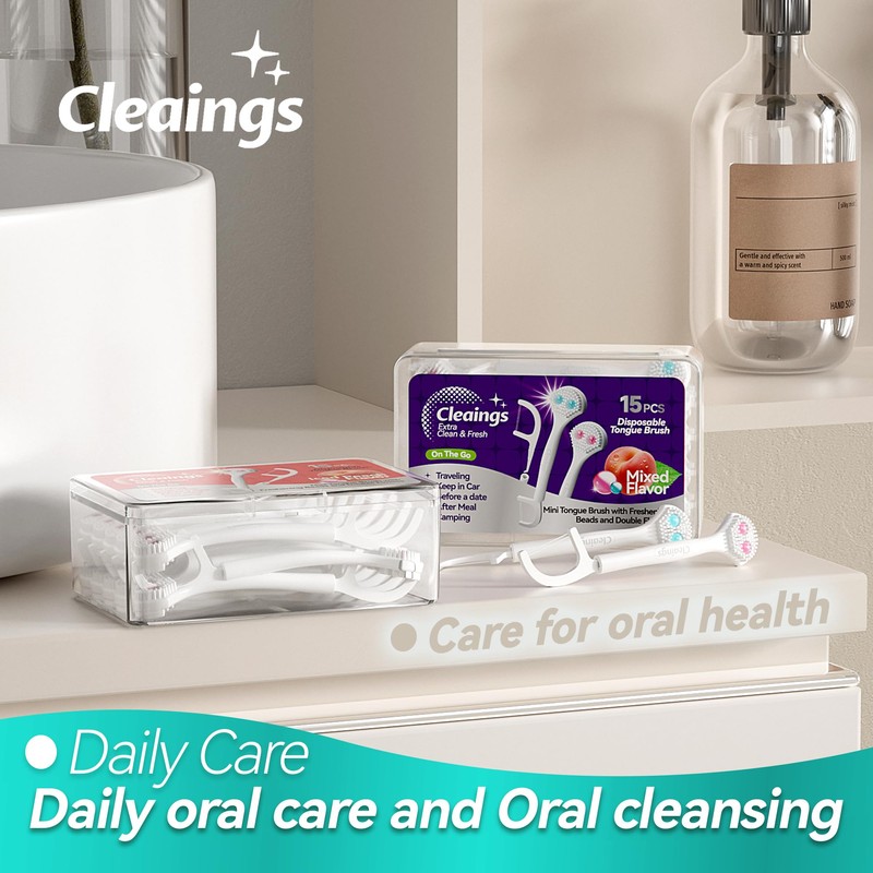 - Disposable design, each box contains 15 brushes, which can help you fight bad breath and oral hygiene problems simply and effectively. The floss picks at the other end can help you clean the residue between the teeth.