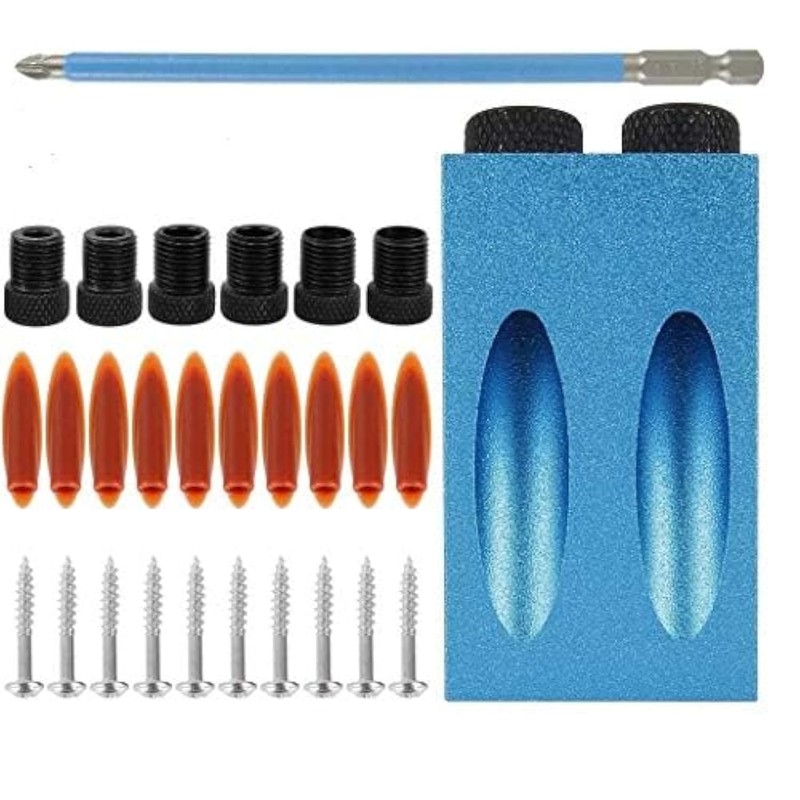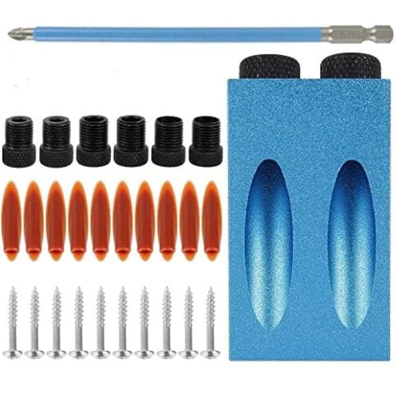 • Package Included: 1 x Pocket hole jig, 3 x Wood drill, 3 x Spacing ring, 20 x accessories, 1 x screwdriver