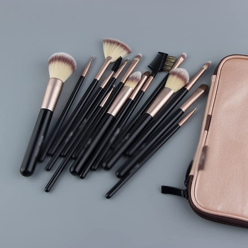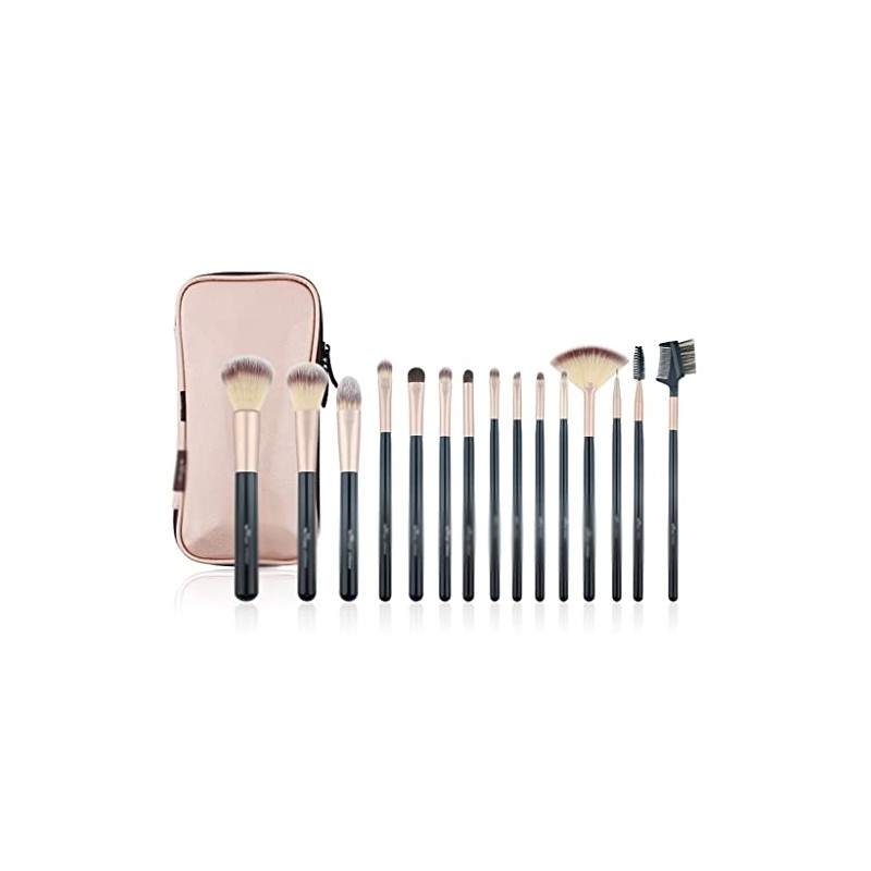 15PCS Professional Makeup Brushes Set Black Wood Handle Set & Kits Brush for Make Up Eye Comb Brush with Rose Case