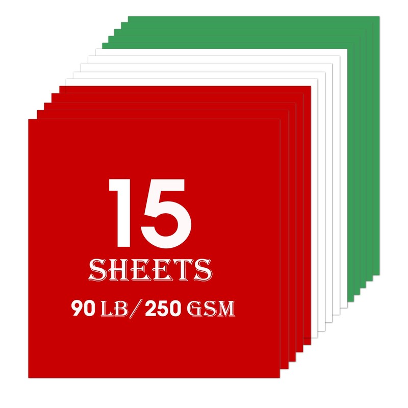 15sheets christmas cardstock paper 12" x 12", 230gsm/80lb Thick Card stock,Printer Paper, Party Decors,Paper Craft, School Suppliesred (red green white)