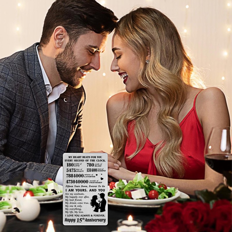 - 15 Year Anniversary Engraved Wallet Card - The meaningful card size about 3.37"x2.12"x0.02", so perfect in any wallet. An unique gifts for your wife gift idea, greeting card