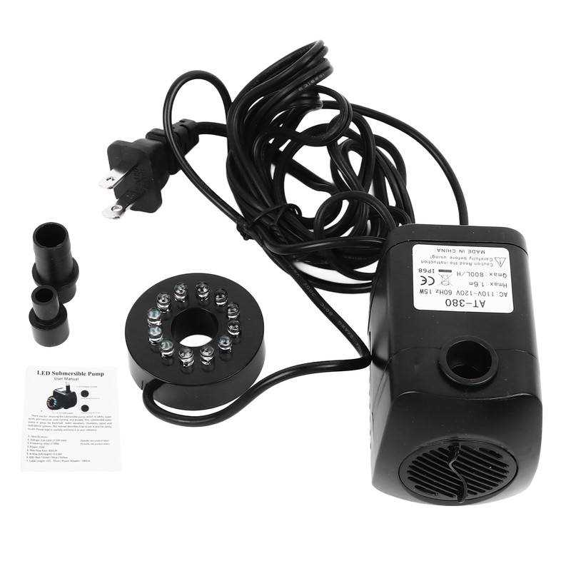 15W Small Fountain Pump with Light Adjustable Quiet Mini Submersible Water Pump for Fish Tank Statuary Gardens