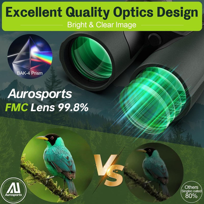 - 【15x High-Power Fernglas】Aurosports Fernglas mit 15X hohe Leistung Vergrößerung und 56mm Objektivlinsen, bietet Ihnen 225ft/1000yds großes Sichtfeld, liefert große klare und helle Bilddetails.Dies ermöglicht Ihnen, einen genaueren Blick auf die komplizierten Details der Federn der Vögel während der Vogelbeobachtung zu bekommen. Perfekt für Tierbeobachtung, Jagd, Wandern und Sportveranstaltungen.