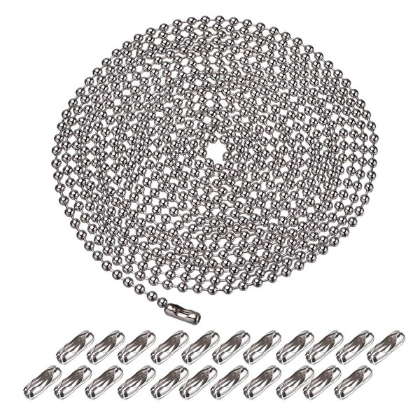 16.4 Feet Ball Bead Chain, Metal Beaded Pull Chain Extension with Connector Ball Chain Keychain Beaded Roller Chain with 20 Matching Connectors (3.2 mm, Silver)
