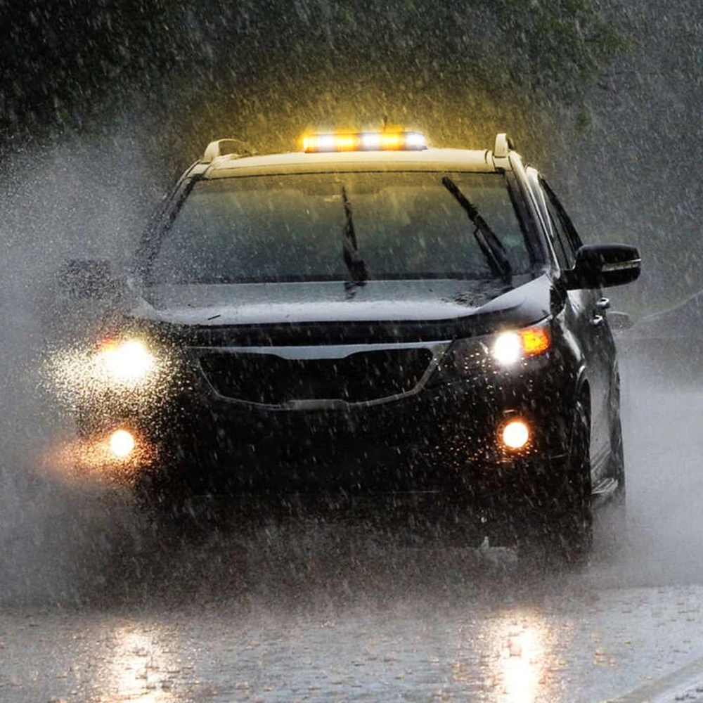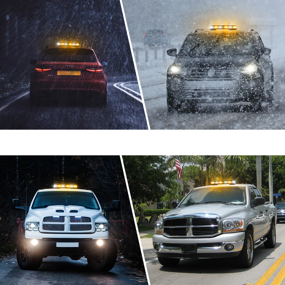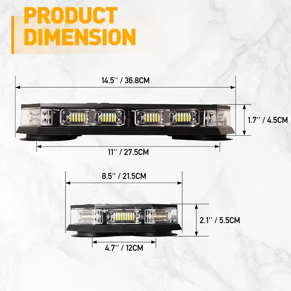 WATERPROOF GRADE IP68 | The Emergency Warning LED Strobe Light Bar is made of high quality ABS material & rugged sleek frame & sealed weatherproof build, Professional-grade design, waterproof with IP68, over 50,000 hours life span. Great to use in rain, fog, dust, and snow weather, resisting moisture and vibration, escorting your driving. |