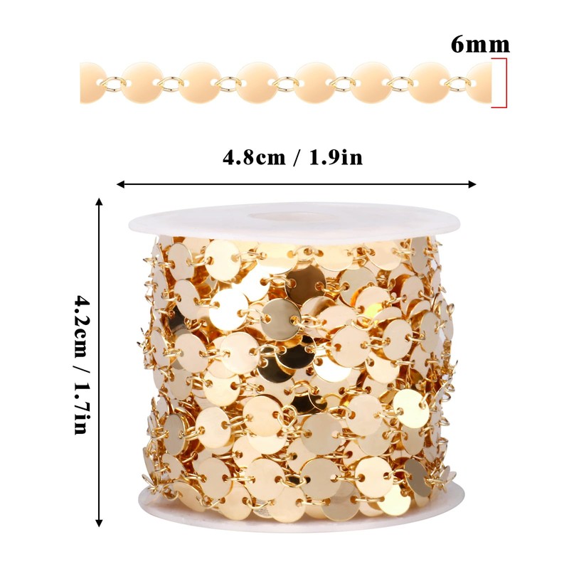 - Easy to Use: Very convenient to store, gold round sequin chain in a roll, and link chains can be cut to any length you desire.
