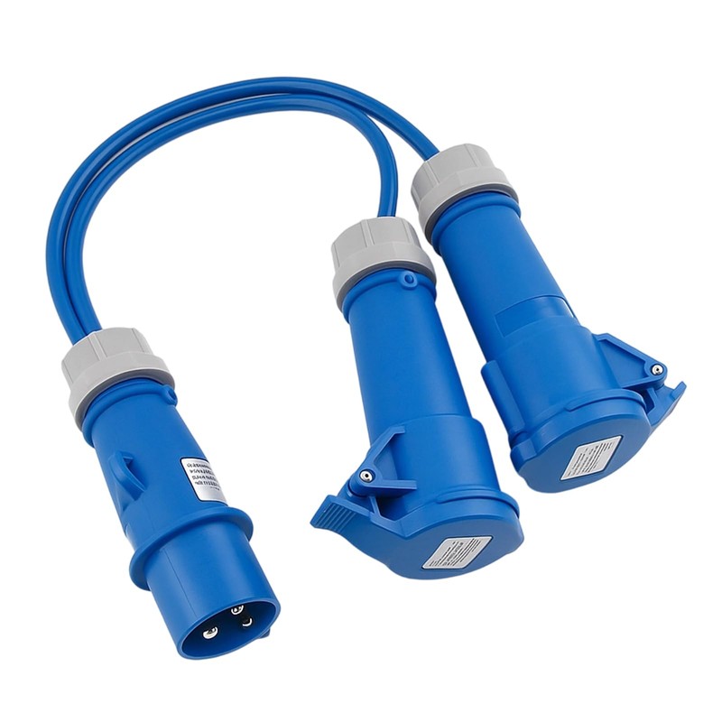 Whether you're setting up at a campsite, hosting an outdoor event, operating a mobile catering business, or preparing your home for a power outage with a generator, this splitter cable provides the flexibility and reliability you require. It seamlessly transforms one standard 16-amp (240V) industrial commando (CEEform) socket into two, allowing you to power a combination of essential appliances such as your caravan's air conditioner, electric heater, refrigerator, lighting rig, or power tools simultaneously and safely.