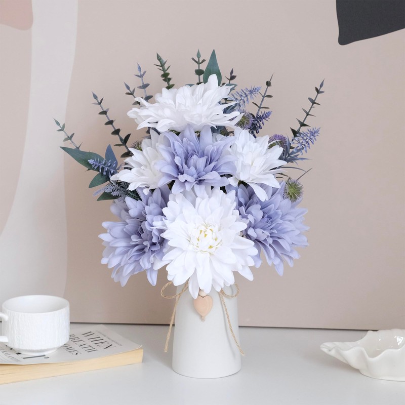 - Unique and Stylish Design: Designed by HOPEME, this artificial flower arrangement combines vibrant faux dahlias with greenery and rustic charm to create a timeless and exclusive decorative piece for your home or event décor needs.