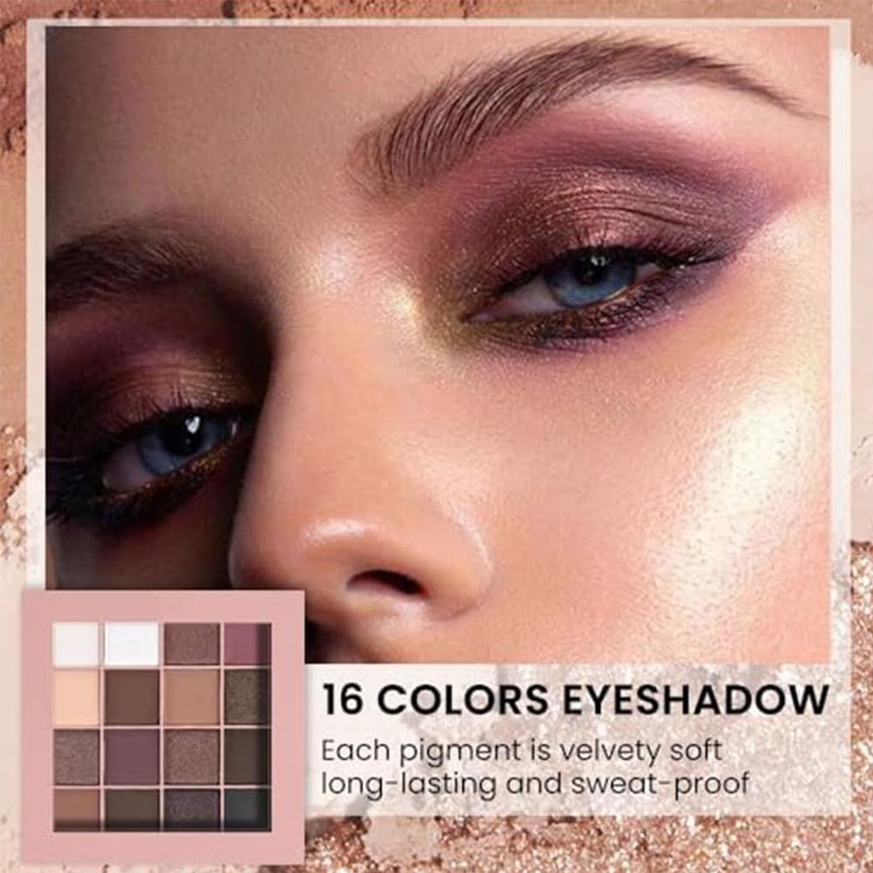 16 Color Eyeshadow Matte Eye Makeup, Waterproof, High Coloring, Glitter, Fade Resistant, High Adhesion, Eye Palette, Gift (1904B)
