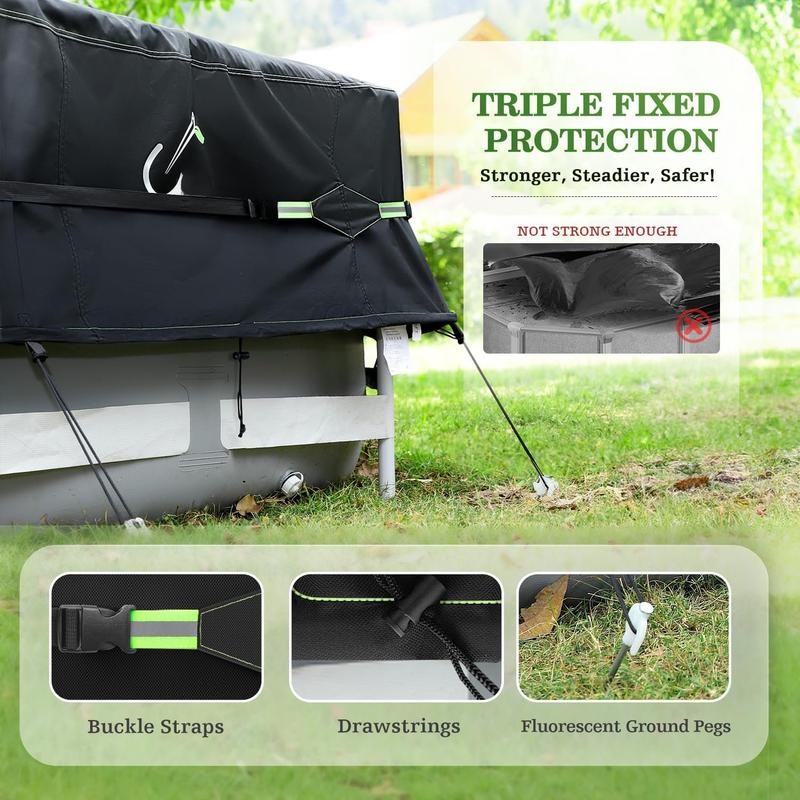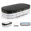 16 Ft Round Winter Pool Cover with Reflective Strips, Swimming Pool Cover for Above Ground Pools, Solar Cover Including Rope Tie and Luminous Ground Nails, PU Tarp Snug Fit for UV Protected:_Black(Oval)_12 x24 Ft-Oval Pool Cover